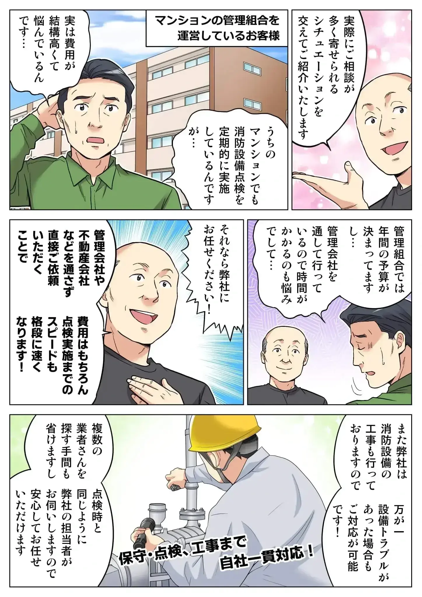 消防設備に携わって30年以上の経験を持つ弊社は、安全を守ることを第一に考えて行動しています。お客様に寄り添いながら、最適な設備を整え、緊急時の設備のため、絶対にミスは許されないという緊張感もありますが、自信と誇りを持って仕事に取り組んでいます。私たちは今まで培ってきた高度な技術と豊かな経験を活かし、常にお客様の安全を考えたサービスを提供いたします。
