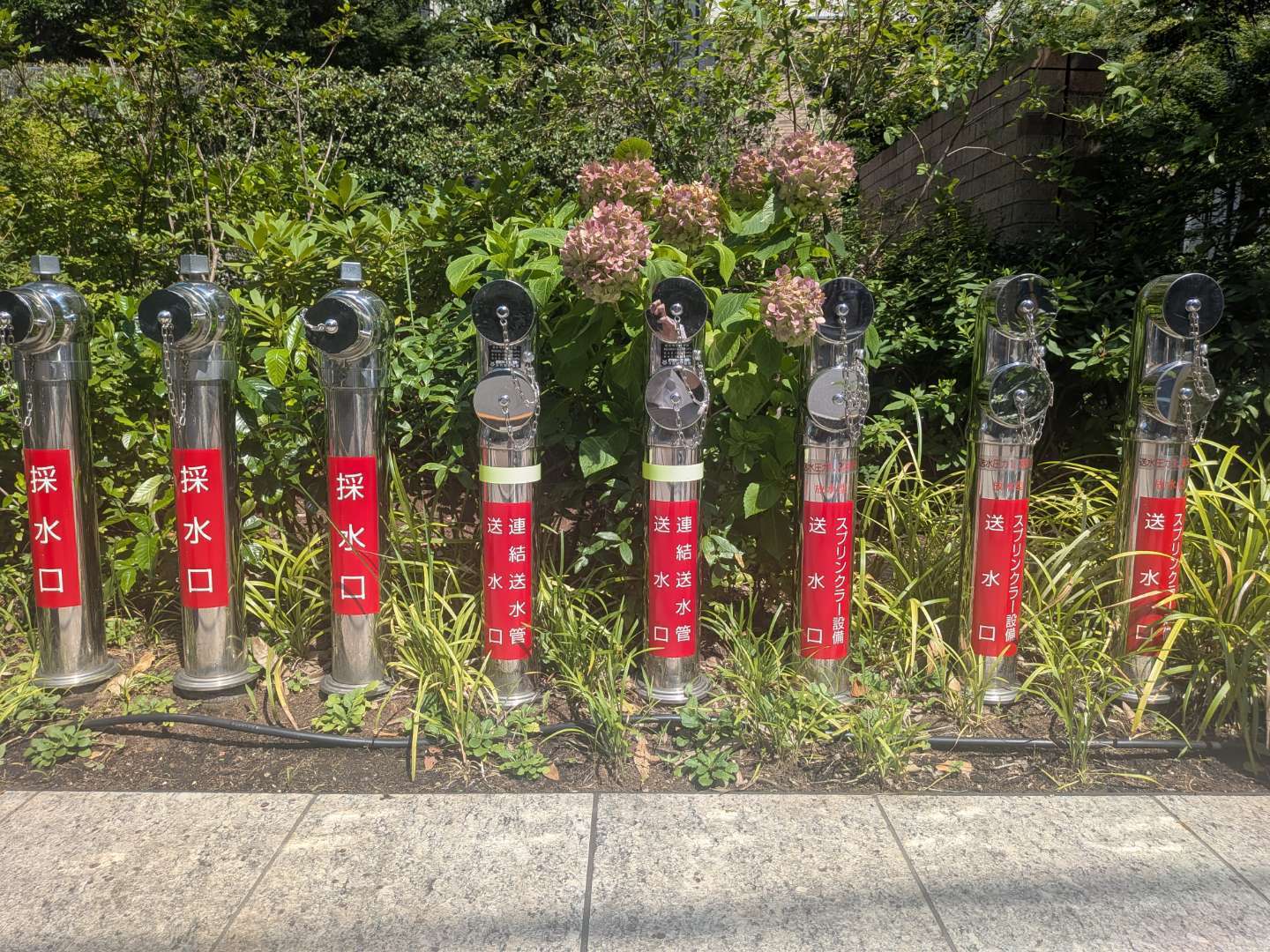 建物の外壁や駐車場付近に設置され、消防車のホースを接続する部分。